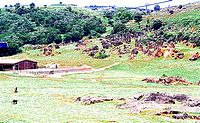 After 5 nights we moved on to the CAM campsite at Gellilydan which, despite the handbook labelling it as Ffestiog it was several miles away. Stlll, there was some excellent walking to be found around this delightful little campsite. North took us cross country onto the track of the Ffestiniog railway as far as Tanygrisiau then back through forestry and little yellow roads, 13 miles. Next day, spurred on by our new-found fitness. we then designed a walk which almost extended us above and beyond the kinaesthetic barrier. The circuit took along the shores of Llyn Trawsfynedd, then over the Cwm of the legendary magic pigs where I always assumed that bogs were more or less horizontal but this 30 degree slope broke all the rules. and then, following a dotted trail on the map which eventually became an actual trail. Eventually we traversed along Llyn Tecwyn Isaf and Uchaf to arrive, gasping at the old Maentwrog power station. Just another 3 miles of steady uphill. 14.5 miles! Ouch!