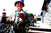After a fairly scary hour, however, we emerged unscathed into the lovely upper meadows, Pic 18, which were full of goats. Not fancying Herr Goetz’s suggested circular route, which went for several kilometres through a forest and then three more along the dusty coastal ‘road’, we constructed a much better return through the upper meadows and down to the car. Ralph Goetz (still running) 3hr 30 mins for his longer route; intrepid Hubbards 4 hrs 30 mins for our shorter but much better option.