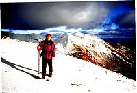 ridge and we were soon cramponning up glorious neve.With the clouds dispersing
