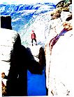 shadows lengthened across the rippled summit snows. A few black-bottomed